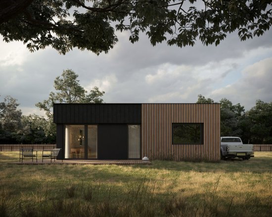 Fast quadratischer Grundriss, Flachdach und originale Holzvertäfelung. Das sind die Hauptmerkmale des Hauses BUNGALOV 83 R, das ein Symbol für modernes und wirtschaftliches Wohnen ist. Die Wohnfläche des Hauses und seines Zubehörs beträgt über 83 m2, was für das Familienleben völlig ausreichend ist. Drei geräumige Zimmer, ein helles Wohnzimmer mit Küchenzeile, Zugang zur Terrasse und ein großes Badezimmer. Darüber hinaus über 20 m2 Garagenplatz und Terrasse. Lassen Sie sich von den einfachen, aber praktischen Formen des Einfamilienhauses BUNGALOV 83 R verführen. Denn in der Einfachheit liegt die Schönheit.